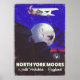 North York Moors, affiche de voyage britannique de style vintage anglais du paysage du Yorkshire la nuit sous une immense pleine lune.