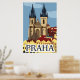 Ce poster vintage est une illustration du Carré de la Vieille Ville. Le grand bâtiment au centre est l'église gothique de Notre-Dame-de-Tyn. Prague est la capitale de la République Tchèque et Praha est l'orthographe tchèque de Prague.