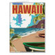 Affiche de voyage vintage d'Hawaii d'un vieux bateau de pêche sur une plage de sable.