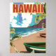 Affiche de voyage vintage d'Hawaii d'un vieux bateau de pêche sur une plage de sable.