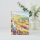 Affiche de voyage illustration vintage de la ville de Nice France présentant la Promenade des Anglais sur la côte sud de la Côte d'Azur. Vous pouvez voir le littoral avec des plages de sable, des palmiers et des voitures décapotables anciennes. Une femme se détend et profite de la vue.