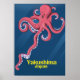 Poster de voyage Yakushima Octopus Japan avec une belle pieuvre de style dessin animé.