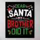 Affiche Dear Santa My Brother Did It Funny Merry Christmas