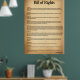 Déclaration des droits Constitution américaine Poster Le document fondateur historique des États-Unis d'Amérique, les 10 premiers amendements de la Constitution américaine. Ces dix amendements constituent la base des droits de l'individu contre l'État.