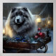Affiche Décor de Noël Keeshond Snowy Sleigh