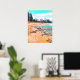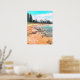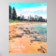 Thème imprimé voyage avec ciel bleu sur les plages du Nord de Sydney Dee Why beach. Thème vacances plage. Vacances estivales. Couleurs vintages rétro pour un thème de plages vintage Sydney.