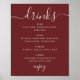 Affiche Deep Wine Red Wedding Drinks Menu. Modern Bar Sign