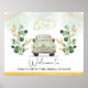 Klaxonnez, criez et faites signe ! Un panneau de bienvenue unique pour une douche de mariage en voiture avec une verdure aquarelle élégante et une voiture vintage chic
