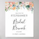 Élégant poster de déjeuner de mariage floral botanique. Panneau de bienvenue de déjeuner de mariage personnalisable avec une guirlande aquarelle de fleurs roses et pêche avec des accents de feuillage et de verdure. Facile à personnaliser. Obtenez le vôtre aujourd'hui !