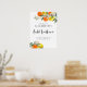 Bienvenue aux invités à votre événement avec ce panneau d'accueil pour le déjeuner botanique. Il présente des illustrations d'aquarelle d'oranges, de citrons, de fleurs d'oranges et de verdure. Personnalisez en ajoutant le nom, la date, l'heure, le lieu, l'adresse et d'autres détails de l'événement. Ce panneau d'accueil aux agrumes est parfait pour les douches nuptiales d'été et de jardin. Des éléments correspondants sont disponibles.