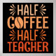 Conception amusante de café pour l'enseignant qui aime leur café, dispose d'un café haricot et texte qui dit Half Coffee Demi-Enseignant! Tasses de café, autocollants, sacs, coussins, T-shirts, et plus !