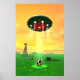 Illustration comique d'une vache enlevée par une soucoupe volante