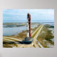 Une vue en grand angle au Launch Complex 39, Kennedy Space Center (KSC), montrant le véhicule spatial Apollo 14 (Spacecraft 110/Lunar Module 8/Saturn 509) sur le chemin du Vehicle Assembly Building (VAB) au Pad A. La cheminée Saturn V et sa tour de lancement mobile se trouvent au sommet d'un énorme rameur-transporteur. Les équipages d'Apollo 14 seront les astronautes Alan B. Shepard Jr., commandant; Stuart A. Roosa, pilote de module de commandement; et Edgar D. Mitchell, pilote de module lunaire.