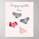 Pancarte jeu de culotte pour douche de lingerie de mariage présente un fond gris en dentelle et des culottes sexy avec “déposez vos culottes ici“. Coordonne avec l'invitation de douche de lingerie de mariage.