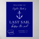 Célébrez le dernier voyage de la mariée avec un air marin ! Ce design de bachelorette à thème mêle les tons bleu et blanc et le charme d'inspiration océanique. Doté d'une ancre et d'un casquette de capitaine, il est idéal pour des escapades côtières, des fêtes en bateau et des célébrations en bord de mer. Un cadeau élégant pour la future mariée alors qu'elle navigue dans son prochain chapitre.