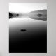 Une seule roche brise la surface lisse de Derwentwater sur cette photo en noir et blanc du lac en hiver.