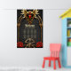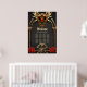 Des noeuds celtiques et un coeur dans l'élégance gothique. Les cadres d'inspiration gothique comprennent d'élégantes arches dorées et des colonnes qui rappellent les cathédrales gothiques. Ces éléments sont finement travaillés et décorés de motifs de noeud celtique complexes. Un emblème de coeur ailé, entouré de joyaux rouges vibrants, se trouve au centre supérieur du cadre. Le fond du cadre est dominé par un dessin de crâne doré, symbolisant à la fois la force et le mystère.