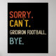 Affiche Désolé Can' ; t Gridiron Football Bye Shirts Gr