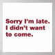 Affiche Désolé d'être en retard. Je ne voulais pas venir