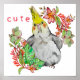 Affiche Dessin d'aquarelle d'un perroquet amusant en fleur
