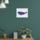 Affiche Dessin d'art de la baleine mignonne en bleu océan
