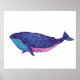 Illustration amusante de baleine vive en violet et bleu.