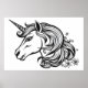 Affiche Dessin de tête de licorne mignon.