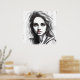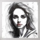 Portrait artistique en noir et blanc d'une femme avec des cheveux mi-longs. L'œuvre est réalisée dans un style expressif, combinant des traits précis et des coups de crayon plus dynamiques. Le visage est dessiné avec beaucoup de contraste entre les zones d'ombre et de lumière, créant un effet dramatique. Les lèvres ont une légère teinte rouge qui ressort du dessin principalement monochrome. Le regard aux yeux marrons est intense et direct, et la personne porte ce qui semble être un vêtement à col.