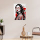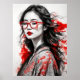 Black and White Asian Korean Woman Dessin avec rouge à lèvres et cadres en verre rouge