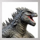 This is a detailed digital illustration focusing on the head of the monster Godzilla as it roars. Its mouth is wide open, revealing rows of sharp teeth and a reddish interior. The creature's skin is intricately textured with scales and bony plates, and it has a row of jagged dorsal spines visible along its neck. Its eyes are small and appear intense. The close-up view emphasizes the monster's ferocity and powerful presence. The plain background ensures that all attention is directed to the detailed rendering of Godzilla's head.