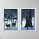 Affiche Deux cerfs dans la fenêtre d'hiver avec une affich