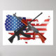 Bataille d'assaut AR15 et AK47 semi-automatique Armes sur les États-Unis Plan avec drapeau américain Deuxième amendement Constitution Illustration Dessin Poster