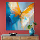 Cette œuvre d'art abstraite lumineuse capture le pouvoir fragile de la transformation à travers l'image d'un papillon en plein vol. Des ailes chaudes d'une couleur orange doré s'étendent largement sur un fond serein composé de nuances de bleu superposées, d'ivoire doux et de tons de ciel subtils, créant une sensation d'ouverture, de lumière et de liberté. Des coups de pinceau expressifs et des textures fluides donnent au papillon une impression de mouvement, comme s'il venait d'émerger et s'élevait dans les airs.