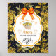Un design Fête des mariées élégant avec des abeilles et des fleurs d'or arrière - plan et un arc coquette orange.