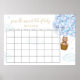 Doté d'un mignon ourson en peluche dans une montgolfière bleue, ce poster chic et amusant baby shower devinez le jour peut être personnalisé avec votre message spécial et votre nom de bébé. Conçu par Thisisnotme©