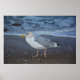 Eine Seemöwe am Sandstrand vor einer Welle an der Nordsee Küste