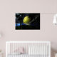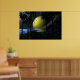 Digital art of Saturn setting behind an ocean and palm trees. This art was fully developed in 3d programs!