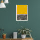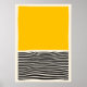 L'art Abstrait à l'illusion d'optique touche avec un bloc jaune gras, des lignes ondulées noires et une bordure beige.