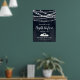 Dîner de répétition Bienvenue à la nuit avant la signature - ce design présente des lumières à cordes et des étoiles sur un arrière - plan couleur couleur fusain bleu. Et en bas - Deux cygnes formant une forme cardiaque.