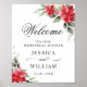 Affiche de bienvenue de mariage de pin de Poinsettia Rouge Élégant.