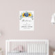 Élégant et moderne, l'affiche de bienvenue pour le dîner de répétition de mariage en plein été présente un bouquet de tournesols, hydrangeas et pivoines aquarelles dans des nuances de jaune, ardoise et bleu poussiéreux avec des feuilles botaniques vertes luxuriantes et eucalyptus. Veuillez trouver plus de modèles et de variations correspondants dans ma boutique "blissweddingpaperie". Et n'hésitez pas à me contacter pour une personnalisation supplémentaire ou des articles assortis.
