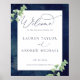 Élégant et moderne, bleu foncé à l'aquarelle avec verdure Bienvenue au dîner de répétition, pour un look moderne et magnifique. Personnalisez avec les informations de votre dîner de répétition/fête dans une écriture moderne.