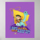 Ce design vibrant présente une scène de Dino Ranch, avec la jeune cowgirl déterminée Min, avec sa signature cheveux foncés dans une tresse, casquette cowboy jaune, gilet brun, pantalon blanc et bottes noires. Min twirille habilement son lasso, prête pour toute aventure de ranch. Clover, son sympathique brontosaurus bleu clair, avec une selle jaune, se tient fidèlement à ses côtés. L'arrière - plan éclate avec des formes géométriques violettes et jaunes dynamiques, ainsi qu'un emblème étoilé, renforçant l'atmosphère énergique et ludique du Ranch Dino. Le texte habilitant "I ROPE like A GIRL, ESSAIE TO KEEP UP !" est affiché en bas. Cette oeuvre reflète parfaitement l'esprit amusant, amical et aventureux de Dino Ranch, ce qui en fait un lieu idéal pour les fans du spectacle.