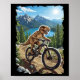 Affiche Dinosaur Mountain Biking Through Forest Trail