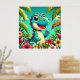 Affiche Dinosaure De Dessin Au Milieu D'Un Tropical Vibran