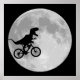 Affiche Dinosaure sur un vélo dans le ciel avec la lune