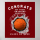 Équipe de basketball créative ou affiche de félicitations pour joueur de basketball pour la soirée des seniors ou la fête de remise des diplômes.