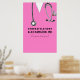 Affiche de fête de remise des diplômes de médecin personnalisée avec des blouses roses pour la célébration de la remise des diplômes de la faculté de médecine. Pour personnaliser, modifiez le texte pour ajouter le nom et les références du médecin.