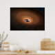 Dans l'impression de cet artiste, un disque de matière poussiéreuse qui reste de la formation d'étoiles ceint deux jeunes étoiles comme un hula hoop. Alors que les deux étoiles tournent autour de l'autre, elles regardent périodiquement à partir du disque, ce qui fait que le système semble clignoter tous les 93 jours. Le houla poussiéreux lui-même est mal aligné de la paire d'étoiles centrale, grâce à la présence gravitationnelle perturbante d'une troisième étoile en orbite à la périphérie du système. Les arcs jaunes clairs près des deux étoiles centrales indiquent leur mouvement par rapport à l'autre et au disque. On croit que ce disque va continuer à frayer les planètes et les autres corps célestes qui composent un système solaire. Spitzer Space Telescope a observé ce système, appelé YLW 16A, dans la lumière infrarouge émise par le gaz réchauffé et la poussière du disque.