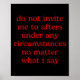 Affiche Do Not Invite Me To Afters Under Any Cirstances No
